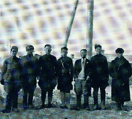 1943年1月,黄汲清(右三)等人在新疆独山子油田做石油地质调查