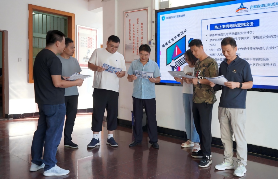 二队自制《网络安全注意事项》宣传页45份,内容聚焦钓鱼邮件识别、数据安全保护、弱密码风险防范等实用知识,安全科专人进行"点对点"发放讲解。充分利用机关大楼LED屏,全天候轮播《中华人民共和国网络安全法》要点及典型诈骗案例,并推送电子版材料,方便野外一线人员实时学习,活动覆盖干部职工200余人。